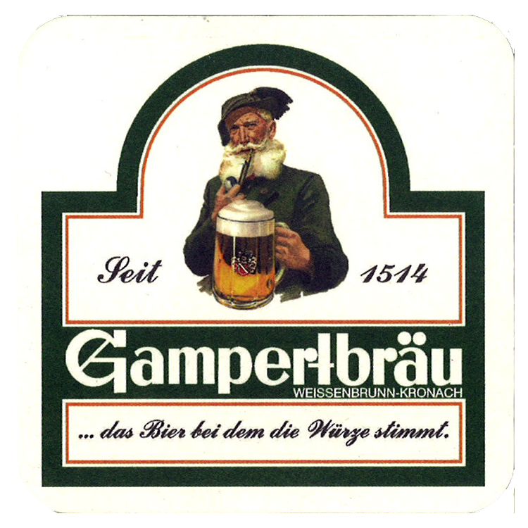 Die Privatbrauerei Gampert-Bräu aus Weißenbrunn bei Kronach zählt zu den traditionsreichsten Brauereien Bayerns. Seit über 500 Jahren befindet sich die Brauerei im Familienbesitz. Im Jahre 1514 verlieh Peter von Redwitz zu Theisenort das Braurecht an Fritz Zollstab aus Weißenbrunn bei Kronach. Dieses Privileg mitsamt der Schenkstatt ging später auf die Familie Gampert über, sodass 1514 als das Gründungsjahr der Gampert-Bräu angesehen werden kann. Sie ist damit zwei Jahre älter als das bayrische Reinheitsgebot von 1516, nach dem die hervorragenden „Förster-Biere“ der Gampert-Bräu noch heute gebraut werden. Ihre mittlerweile elf Biersorten werden nach traditioneller Familienrezeptur gebraut. Als eine von nur noch wenigen Brauereien gewinnt man hier die Würze aus eigener Malzherstellung und ist darauf so stolz, dass man dies im Werbespruch „Das Bier, bei dem die Würze stimmt“ verewigt hat. Unser Tipp: Das „Kättlbier“, ein helles (!) Kellerbier nach einem 400 Jahre alten Familienrezept und nach der sagenumwobenen „Jungferkättl“ aus Weißenbrunn benannt, die als Wassernixe sogar den Dorfbrunnen ziert.