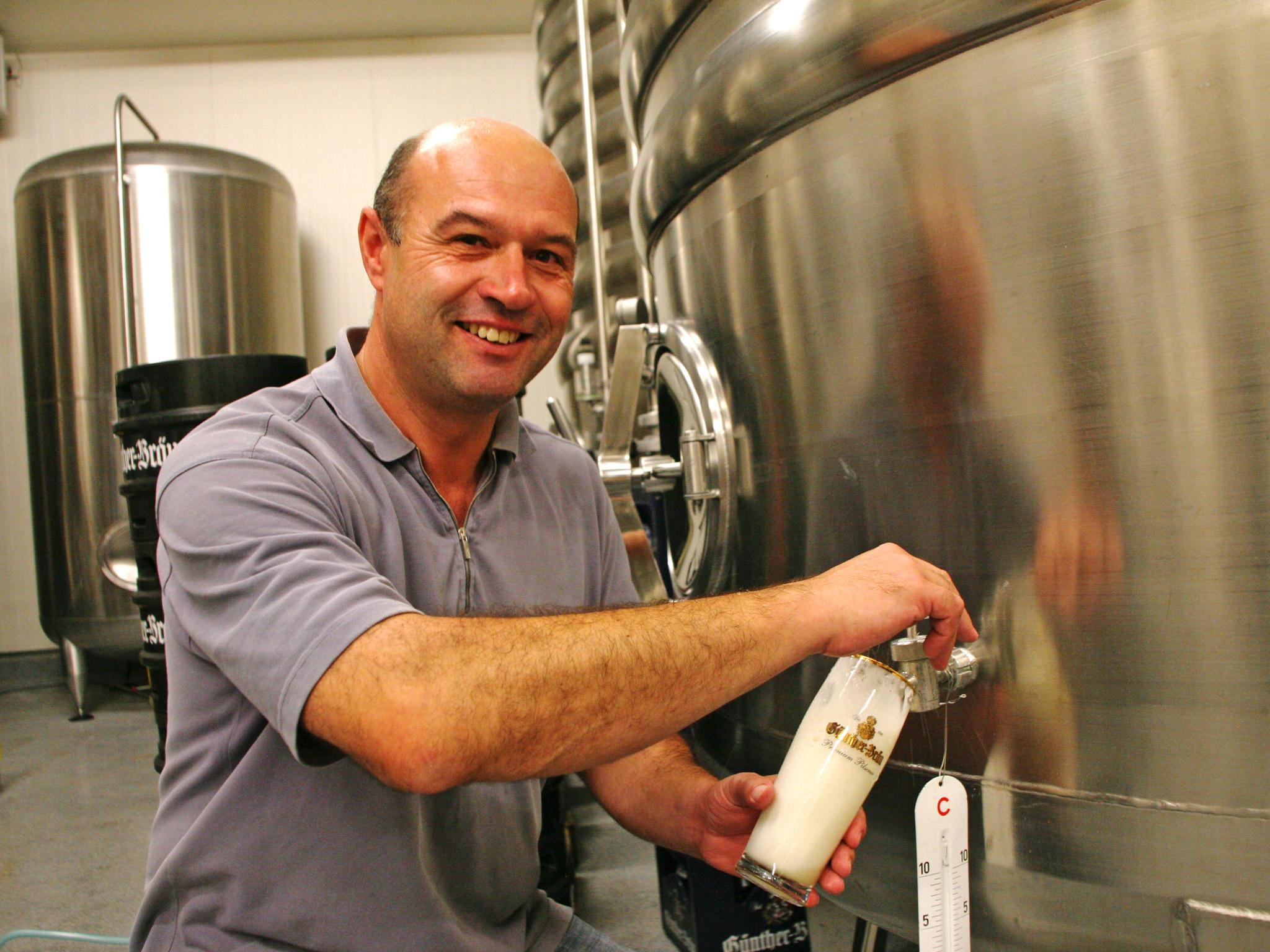 Was Johann und Georg Günther als Kommunbrauer 1840 begonnen haben, führt aktuell Inhaber und Braumeister Peter Günther gemeinsam mit seiner Tochter Lorenza fort. Die sechste Generation des kleinen Familienbetriebes weiß genau, wie ein gutes Bier zu schmecken hat. Schließlich ist das Brauen – wie Peter Günther selbst sagt – sein Leben und seine Leidenschaft. Mit Liebe zum Handwerk und jeder Menge Weitsicht hat er es geschafft, Tradition und Moderne im Betrieb zu vereinen. Nicht umsonst zählt Peter Günther zu den besten Brauern in Deutschland. Vier Zutaten – zehn Biersorten! Wasser, Malz, Hopfen, Hefe – mehr als diese vier Zutaten braucht es zum Bierbrauen eigentlich nicht. Aus ihnen charakterstarke Biere mit individuellem Geschmack zu brauen, ist jedoch eine Kunst, die man beherrschen muss. Weil Peter Günther diese Tatsache täglich aufs Neue begeistert, umfasst das Sortiment inzwischen zehn Biersorten, die ganzjährig verfügbar sind. Allesamt hergestellt mit hochwertigen Zutaten aus der Region. Darauf legt man bei Günthers besonders viel wert.