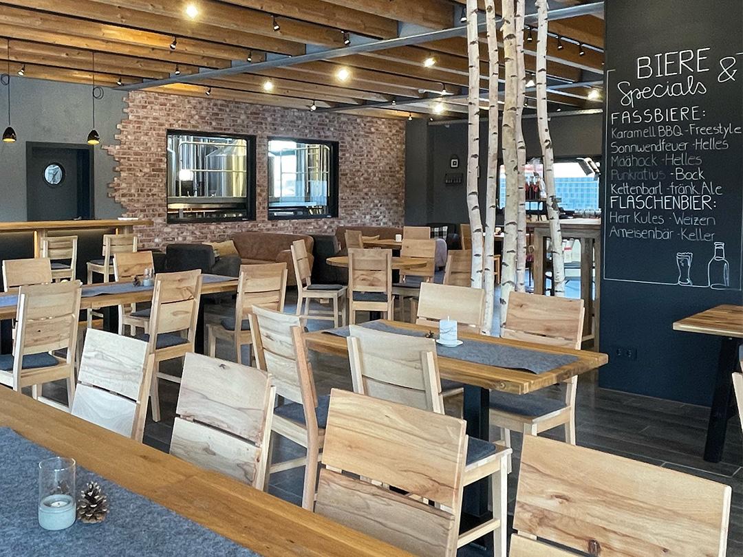 „Sonnwendfeuer“, ein Helles mit fruchtiger Grapefruit-Note, „HELLga“, ein Freestyle-Helles mit Holunderduft und malziger Süße, Lager-, Weizen und Kellerbier, aber auch dezent Verrücktes wie das „Peppermint Pete“ mit einer intensiv erfrischenden Minznote und dem Duft von Zartbitterschokolade – rebellisch geht es im Sudhaus zu, festnageln auf eingefahrene Pfade lässt man sich hier nicht. Das sieht man auch im „Seidlazimmer“ samt Biergarten. Das klingt zwar ganz nach Oberfranken, sieht aber durchaus überraschend aus. Denn Industrial Style trifft auf heimisches Holz, Modernität und verspielte Designelemente auf fränkische Gemütlichkeit. Im „Seidlazimmer“ kann man übrigens auch Biertastings buchen, die ganze Brauerei steht für Besichtigungen offen und wer mitmischen will am Sudkessel, der ist im „Staffelstaaner-Zammbraut-Lab“ genau richtig. Egal, ob man nur zum Bier mit Freunden kommt oder zu Events wie Weihnachtsmarkt oder Jazzfrühschoppen … es warten immer wieder neu ausgeklügelte Brauspezialitäten auf interessierte Entdecker-Gaumen.