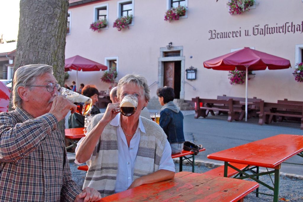 Seit 1834 geht die Familie Krug in Breitenlesau dem Brauerhandwerk nach. Drei Generationen wohnen und arbeiten heute in der Traditionsbrauerei unter einem Dach. Ein Familienbetrieb, der, ohne groß Werbung zu machen, sein Bier inzwischen bis nach Nürnberg, Frankfurt und Berlin, ja sogar in die Toskana und nach Dänemark liefert. Das ist auch kein Wunder, denn das dunkle Bier gehört zu den süffigsten der gesamten Region. Brauereibesitzer und Urvater Konrad „Conny“ Krug sollte dafür geadelt werden. Das passierte zwar nicht, aber zumindest wurde im Ort eine Straße nach ihm benannt! Tochter Corinna hat mittlerweile ihre Braumeisterausbildung absolviert und die Brauerei übernommen, während Schwester Simone den betriebswirtschaftlichen Teil stemmt. Nicht minder qualitätsvoll sind übrigens die deftigen Brotzeiten im Gasthof oder im Biergarten! Noch ein Unikat: Die Brauerei hat ihren eigenen „Tanzsaal“ – zwischen Oktober und April sorgen hier regelmäßig DJs oder Live-Bands für die richtige Musik zum Bier. Man kann hier übrigens auch ganz wunderbar übernachten. Nicht nur nach einer fast durchgetanzten Nacht …