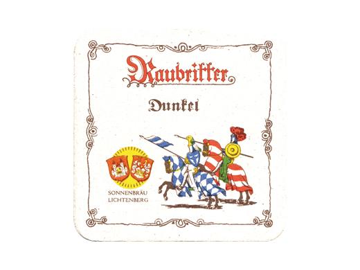 Die Sonnenbräu im kleinen Ritterstädtchen Lichtenberg entstand 1904 aus den Kommunbrauern der Stadt. Bier wird in Lichtenberg jedoch schon seit über 200 Jahren gebraut. Der letzte städtische Braumeister Christian Jungkunz kaufte um 1900 die Braurechte der ca. 65 Kommunbräu-Familien. Er baute zunächst Eis-, Gär- und Lagerkeller und gründete 1904 die Sonnenbräu. Noch heute existiert der alte Lagerkeller, der tief in den Berg geschlagen wurde. 1950 wurde die Brauerei an Peter Trier verkauft, der die Brauerei zu einer angesehenen Firma in Oberfranken machte. Doch nach dessen Tod verfiel die Brauerei in einen Dornröschenschlaf, ehe sie 2018 von Volker Handon und Stefan Lang wieder zum Leben erweckt wurde. Seit 2020 ist Stefan Lang alleiniger Eigentümer der Brauerei. Die unterschiedlichen Biernamen wie zum Beispiel „Lichtenberger Pils“ und „Sonnenweisse“ wurden in den letzten Jahren unter der Marke Raubritter-Bier zusammengefasst. Das „Raubritter Dunkel“, eine Spezialität aus der Region, diente dabei als Namensgeber. Fortan wird das Raubritter-Bier wie damals handwerklich in 60 Hektoliter großen Kupferkesseln gebraut.
