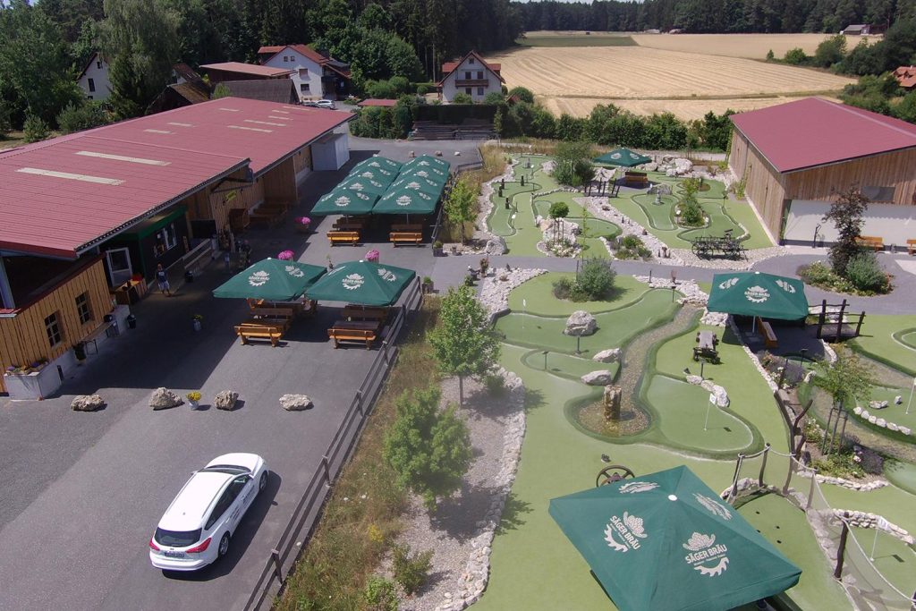 Wer Säger und Pottenstein kennt (oder googelt), der denkt zuerst an die Freizeitanlage der Familie Brütting mit ihrem urigen Abenteuer-Golf und nicht an die kleine Brauerei, die Johannes erst im Februar 2022 als 70. Brauerei der Fränkischen Schweiz gründete. Hier, wo es eine Brauereidichte gibt wie nirgendwo sonst in Deutschland, sorgt nun Johannes dafür, dass dieser Rekord gehalten werden kann. Die Biere sind traditionell: hell oder dunkel. Fertig. Nur zu besonderen Anlässen gibt es gelegentlich auch besondere Biere. Da dem Brauer sehr wichtig ist, was in den Kessel kommt, verwendet er, soweit es geht, einheimischen Bio-Hopfen aus dem nahen Anbaugebiet Lilling bei Gräfenberg von der Familie Friedrich. Alle Biere bekommt man frisch vom Fass im Biergarten. Zuvor empfiehlt sich eine Runde Abenteuer-Golf, damit man auch recht durstig wird. Dazu kann man hausgebackenes Sauerteigbrot aus dem Holzbackofen samt Hausmacher Wurstauflage genießen. Oder man steuert die süße Theke an und sucht sich aus den dort präsentierten selbst gebackenen Kuchen und Torten etwas aus.