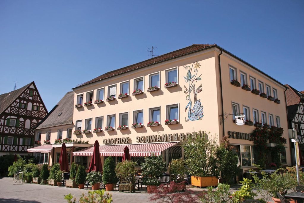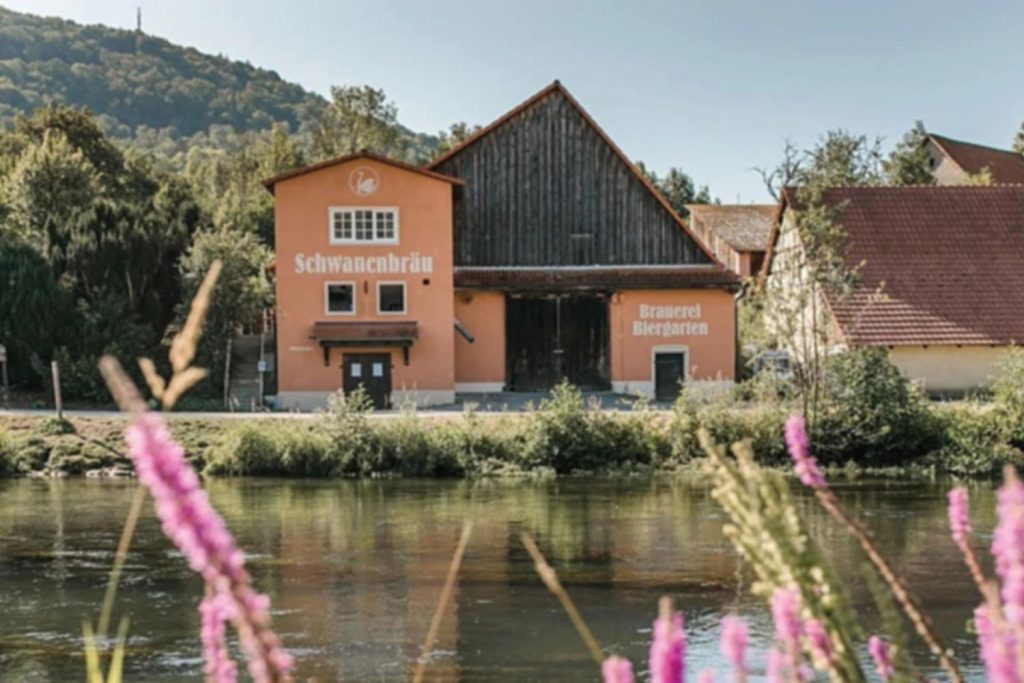 Brauerei samt Gasthof wurden nachweislich Anfang des 17. Jahrhunderts erstmals urkundlich erwähnt. Das Schankrecht wurde 1812 der Familie Ott verbrieft und ist seit 1909 im Besitz der Familie Dotterweich. Wurde dereinst noch im kommunalen Brauhaus gewerkelt, ist man mittlerweile in die Mühlenstraße umgesiedelt und braut dort in einer neuen, modernen Brauerei. Neben den vier Bierklassikern Pils, dunkles Lager, Helles, Hefeweizen sowie saisonale Bieren entstehen hier auch sehr feine Schnäpse und Brände, die am Marktplatz 2 (der Adresse von Hotel und Restaurant) gebrannt werden. Nicht nur, aber gerade im Sommer ist es im Schwanen-Biergarten zauberhaft, wenn man im Grünen sitzt und sich die deftige Brotzeit zum würzigen Bier schmecken lässt. Die Gastlichkeit wird von Familie Dotterweich seit drei Generationen gepflegt, natürlich auch im wunderschön geschmückten Gasthaus am Marktplatz, das zudem mit einer breiten Palette fränkischer Spezialitäten wie Krenfleisch, Sauerbraten oder Kalbsleber aufwartet. Die perfekte Basis vor jedem Ausflug in die Fränkische Schweiz.
