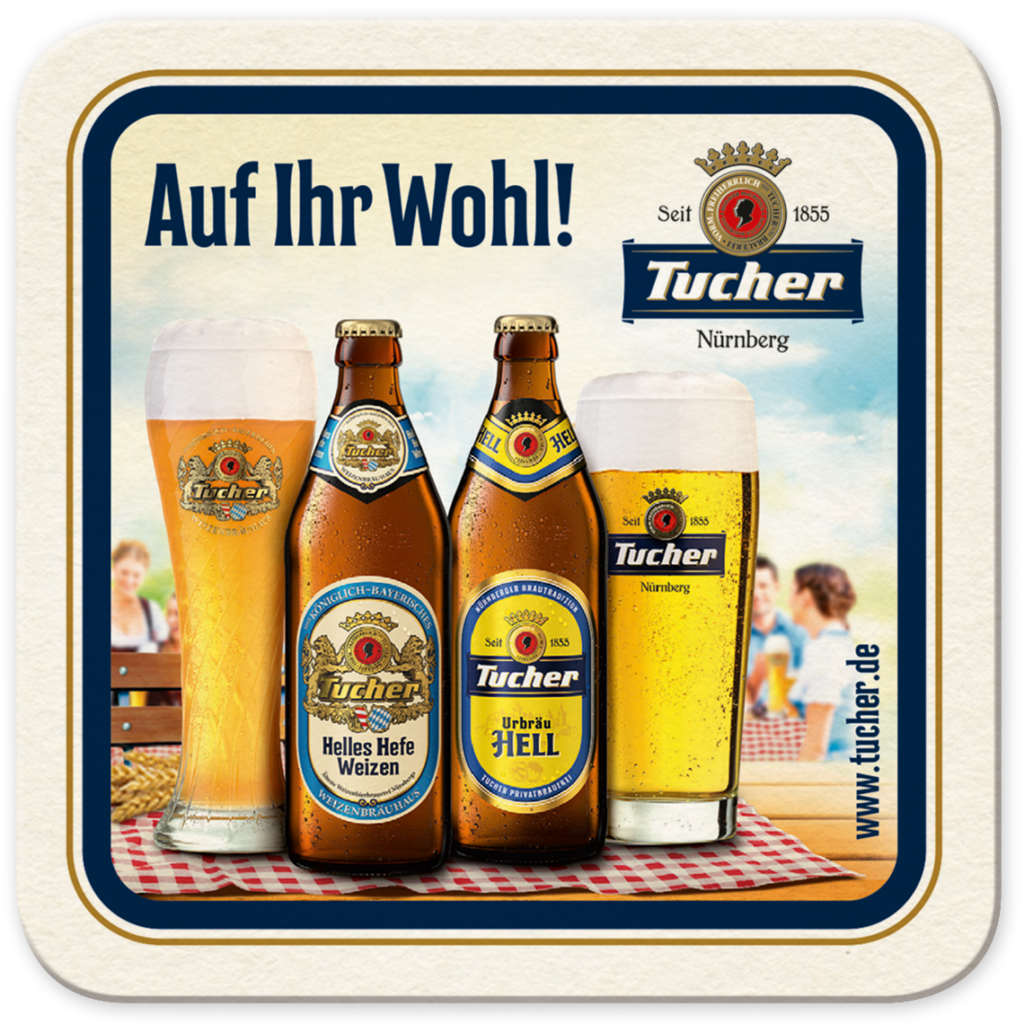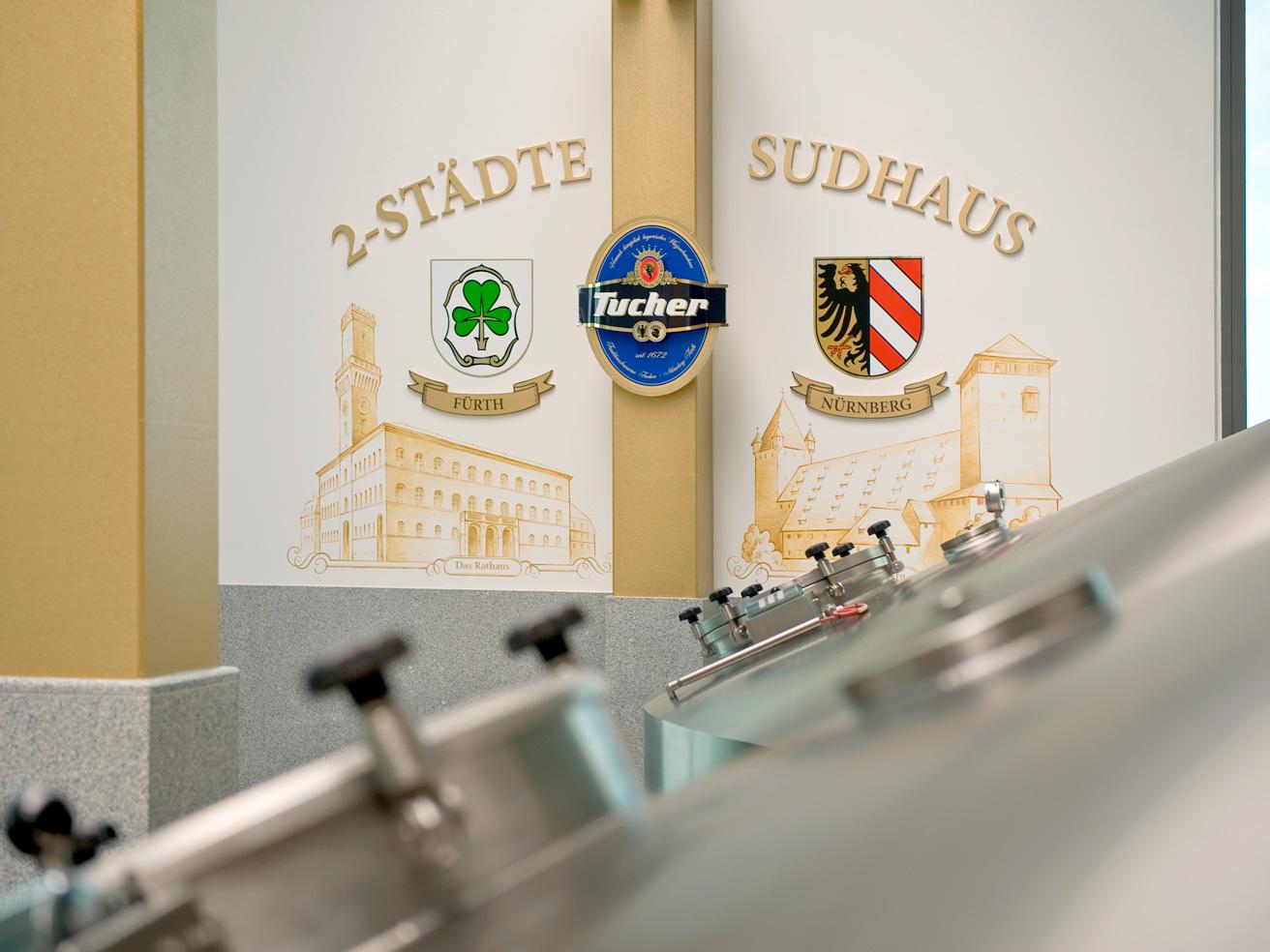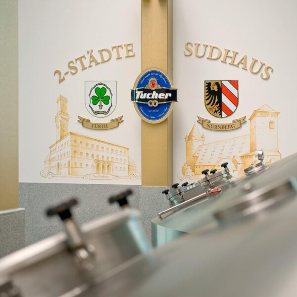 Bereits anno 1672 berichten die Chroniken vom „Städtischen Weizenbrauhaus“ zu Nürnberg. Sie sehen – die Tucher Bräu hat eine lange Geschichte, gespickt mit vielen Kuriositäten. Eine ist beispielsweise, dass sie das einzige Zweistädte-Sudhaus der Welt besitzt, das genau auf der Stadtgrenze der durch ihre spezielle Hassliebe verbundenen Städte Nürnberg und Fürth steht. Eine andere ist das Wappen, auf dem Sie einen Mohren entdecken. Dieses Symbol ist Zeugnis der internationalen Bedeutung, die das Brauhaus schon im 19. Jahrhundert erlangte. 1875 beispielsweise gingen bereits zwei Drittel der Produktion in alle Welt hinaus und noch heute finden Wanderer zum Beispiel in den Wüsten von Namibia alte Tucher-Flaschen. Später firmierte und fusionierte die Brauerei mehrmals um, heute gehören unter anderem die Marken Tucher, Lederer, Patrizier, Hasenbräu, Zirndorfer, Grüner und Humbser zur Tucher Traditionsbrauerei.