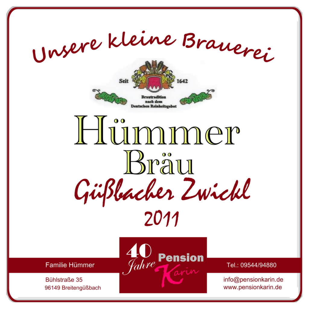 Eigentlich ist man hier in der Pension Karin mit einem wunderschönem Gartenparadies. Die Pension liegt direkt am Mainradweg und ist auch nicht weit von Bamberg und Bad Staffelstein entfernt. Da das Frankenland ein Bierland ist, gibt es in der kleinen Brauerei Hümmer Bräu der Pension Karin verschiedene hausgebraute Biere. Bei der kleinen Brauerei Hümmer Bräu kann man auf eine lange Geschichte zurückblicken. Denn schon seit 1642 wurde das Bier im elterlichen Betrieb gebraut und seitdem befindet sich die Brauerei im Familienbesitz. Im Jahr 2011 hat Karl Hümmer seinen Traum verwirklicht und sich in der Pension Karin selbst eine kleine Brauerei gebaut, welche er im August 2011 eröffnete. Dort braut er eine Vielzahl der hauseigenen Biere, welche Sie gerne von Mai bis August im Gartencafé der Pension Karin probieren können. Die Öffnungszeiten finden sie unter www.pensionkarin.de oder bei Instagram. Sie können die verschiedenen Biere gerne auch im 6er-Träger, in 1- oder 2-Liter-Flaschen oder in verschiedenen Fassgrößen (auf Vorbestellung) mit nach Hause nehmen. Hier sind Sie jederzeit herzlich willkommen!