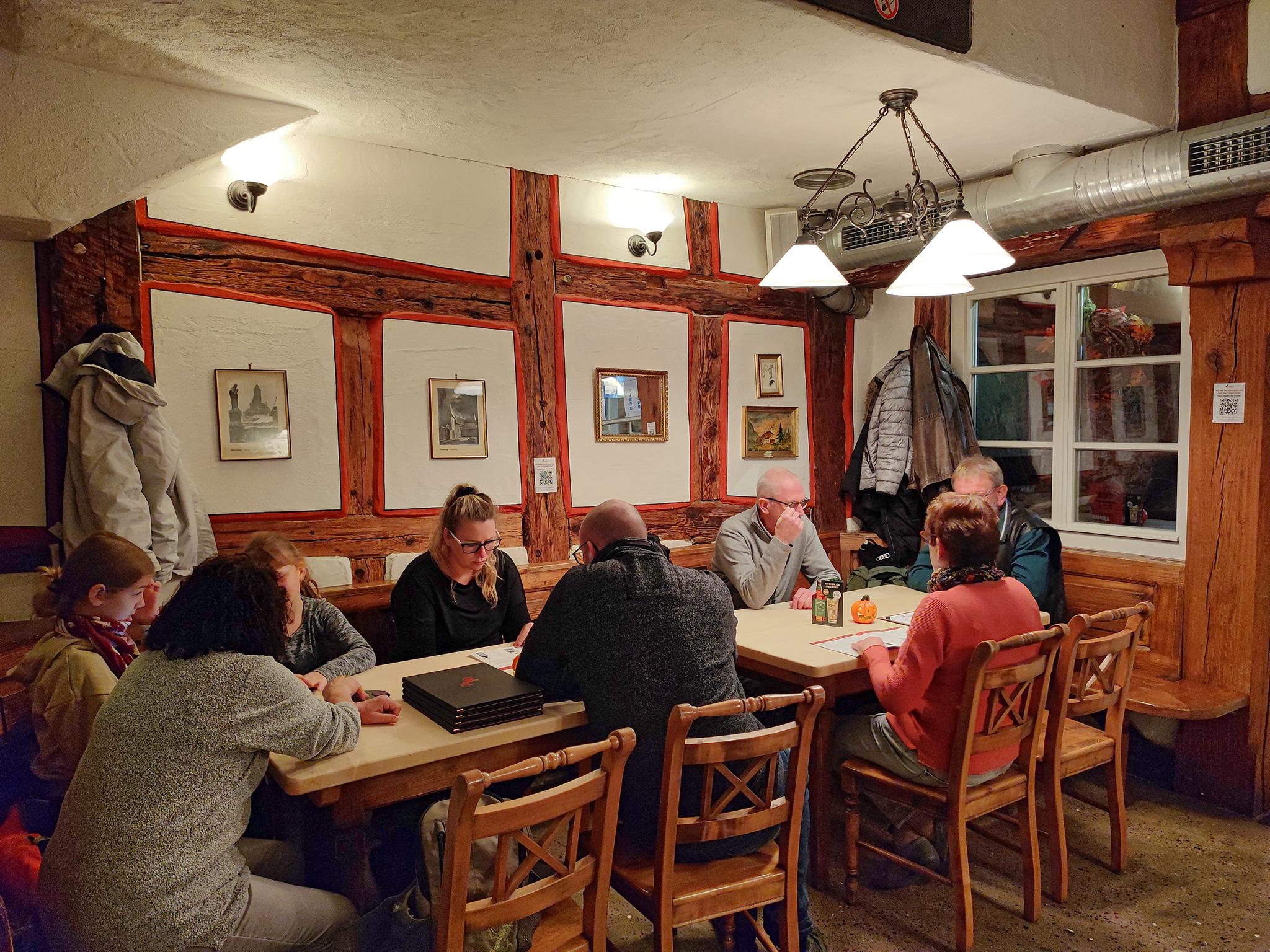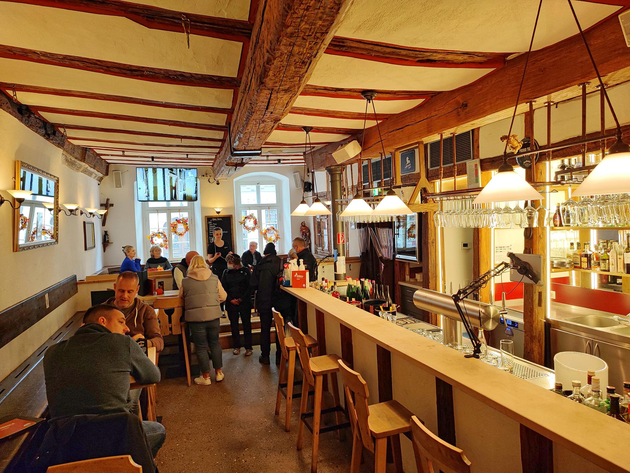 Fränkische Brotzeiten. Täglich kleine Karte mit warmen Gerichten. Spezialitäten: Krustenbratenbrödla, Braumeisterburger, Brotzeit-Platten, gut bürgerliche, saisonal wechselnde Küche.