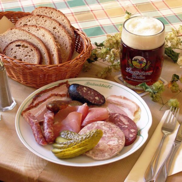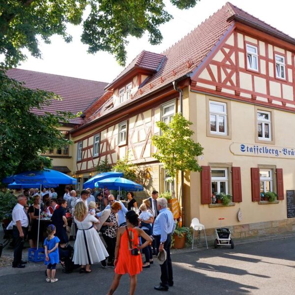 Das wunderschön renovierte Fachwerkhaus lädt einfach zum Verweilen ein. Nicht nur das gute Bier, sondern auch die gute Küche, die viele Spezialitäten aus eigener Schlachtung bietet. Verantwortlich dafür sind Karl-Heinz Wehrfritz, einer der Chefs des Hauses und Metzger- sowie Braumeister und seine Frau Helga. Besonders sehenswert ist der frisch renovierte historische Tanzsaal, der zwischendurch auch als Kino diente. Hier wurden so manche Ehen im heutigen Loffeld begründet, und nicht nur der Senior-Chef hat einen reichen Fundus an Geschichten parat, die sich rund um den Brauereisaal ranken. Seit einiger Zeit finden hier immer wieder Veranstaltungen der Reihe KULTur im Brauereisaal statt (Termine unter www.staffelberg-braeu.de).