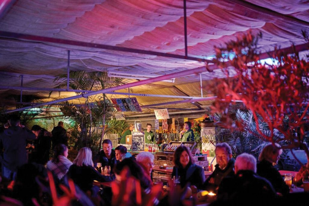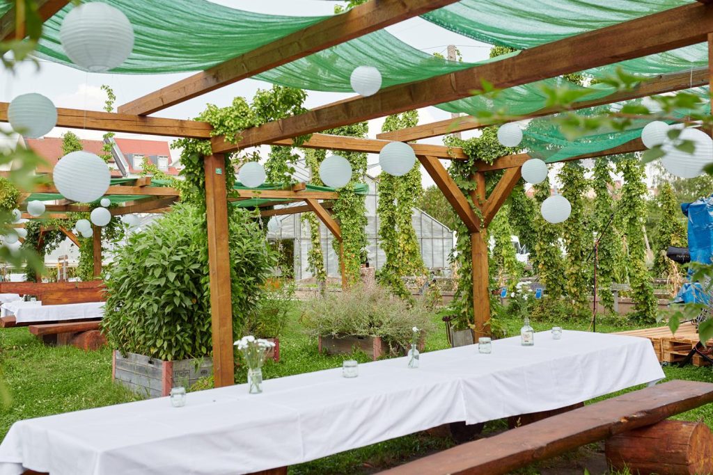 Das fränkische Weltkulturerbe fußt auf Brauerei- und Gärtnertradition. Gärtnerjunge Kris Emmerling tastete sich mit seiner Familie in den 2010er Jahren nach und nach erst an den Hopfenanbau, dann an das Veredeln von Würze und schließlich ans Brauen und Brennen heran. Mittlerweile ist daraus die vielleicht spannendste Brauerei Bambergs geworden – und die einzige, in deren Garten man unter Hopfenranken Bierspezialitäten genießen kann. Dazu gehören viele Sude mit Kräutern, aber auch Innovatives wie Rauchhopfenbier und Chili-Bock.