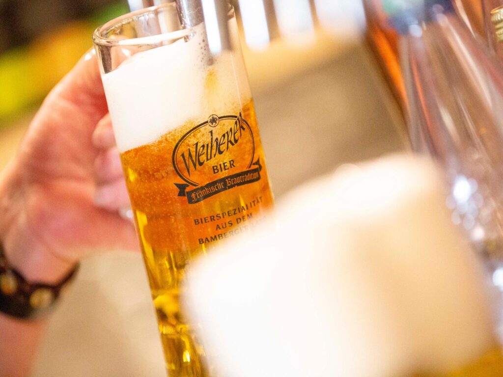 Aus dem Herzen Frankens, zehn Kilometer westlich von Bamberg, kommt das Weiherer Bier vom Brauerei-Gasthof Kundmüller – ein Familienunternehmen, das seit über 150 Jahren für vielfach ausgezeichneten Biergenuss steht. Das Anwesen liegt inmitten idyllischer Natur und in der gemütlichen Gaststätte sowie im urigen Biergarten mit Spielplatz und Streichelzoo kann man hausgemachte Brotzeiten sowie warme fränkische Spezialitäten genießen. Wer länger bleiben will: Es gibt auch ein kleines Biermuseum sowie ganz frisch renovierte Gästezimmer.