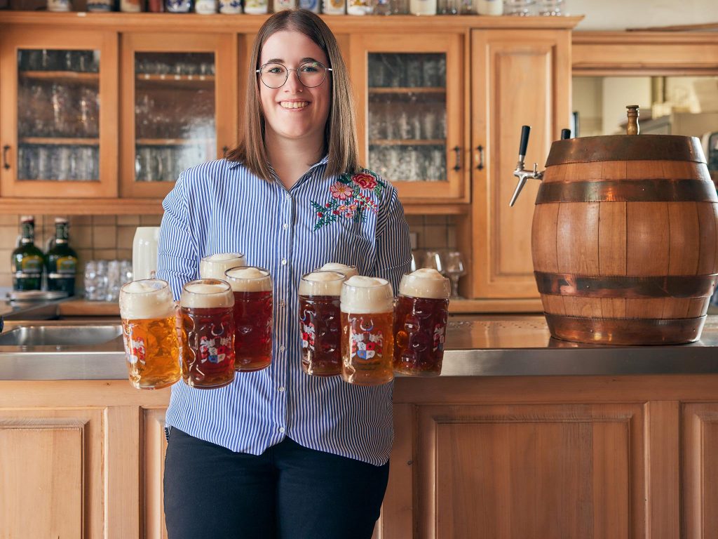Von der Gaststätte und vor allem der wunderschönen Sonnenterrasse bietet sich die schönste Aussicht für Bierfreunde: Ein direkter Blick auf‘s Sudhaus. Bei selbstgebrautem Bier und fränkischen Schmankerln oder einer deftigen Brotzeit (die uns ganz besonders begeistert hat!) lässt es sich hier wirklich gut leben. Sonntagmittag gibt es Bratenküche mit Klößen, alles frisch gezaubert vom exquisit kochenden Juniorchef und mit Bierliebe angereichert von seiner Jana, die als Braumeisterin auch noch mehr Bierkompetenz ins Haus bringt.
