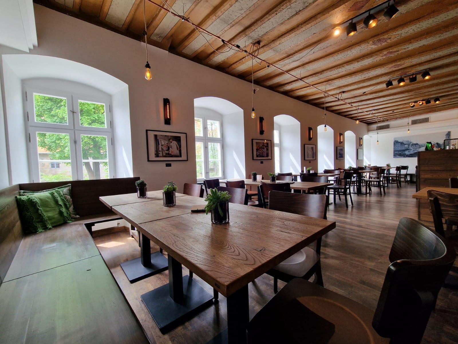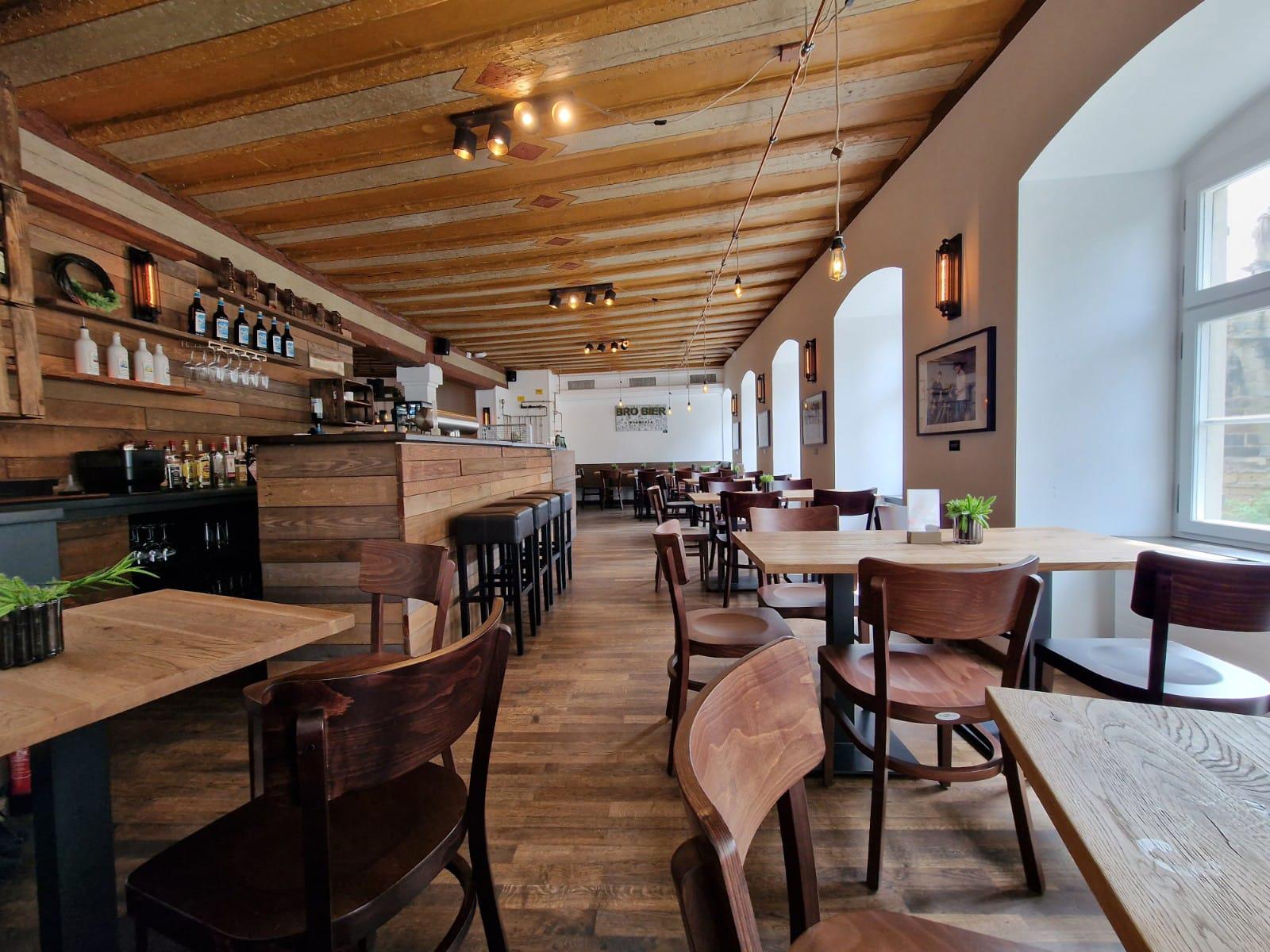 „Neigezwickt“ zwischen Kalter Ente und Grüner Gans hat der kleine Gastro-Schlauch mitten in der Bamberger Altstadt eine bewegte Geschichte. Sein Bierherz entdeckte das Haus kurz vor der Pandemie, erst als „Bierhaus“ und nun als „Brüderla“ unter der Ägide der regen Brauer und Freunde Andreas Eckschmidt und Johannes Lurz, die sich in Reckendorf mit Dominik Eichhorn die Schloßbrauerei teilen. Im Gärtchen sitzt man rund um einen Brunnen und genießt die Hopfenkaltschalen sowie eine kleine, aber sehr feine fränkisch-moderne Küche.