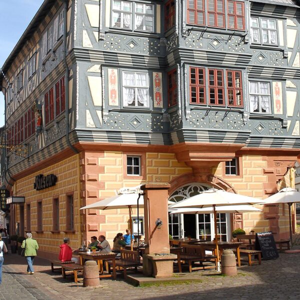 Diese Spezialität ist bei Weitem nicht so gewöhnungsbedürftig, wie es Ihnen in Ihrer Fantasie vielleicht jetzt vorkommen mag. Es handelt sich um Miltenberger Rossäpfel beziehungsweise Leberknödel mit Sauerkraut. Lust bekommen? Wir denken schon. Immerhin befinden Sie sich hier im wohl ältesten Gasthaus Deutschlands, in dem schon im 12. Jahrhundert vornehmlich adelige Gäste bewirtet wurden und beispielsweise 1711 auch Kaiser Karl VI. zu Besuch war. Eine besondere Tradition hat sich hier erhalten: Stammgäste haben ihren eigenen Stammtischkrug mit graviertem Zinndeckel, den der Wirt verwahrt, der zudem ein Ehren-Stammgast-Diplom verleiht. Zu solchen Ehren werden wir wahrscheinlich nie gelangen – aber wenn Sie häufiger nach Miltenberg kommen, können Sie ja mal beim Wirt nachfragen.