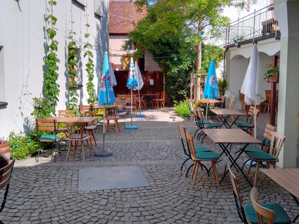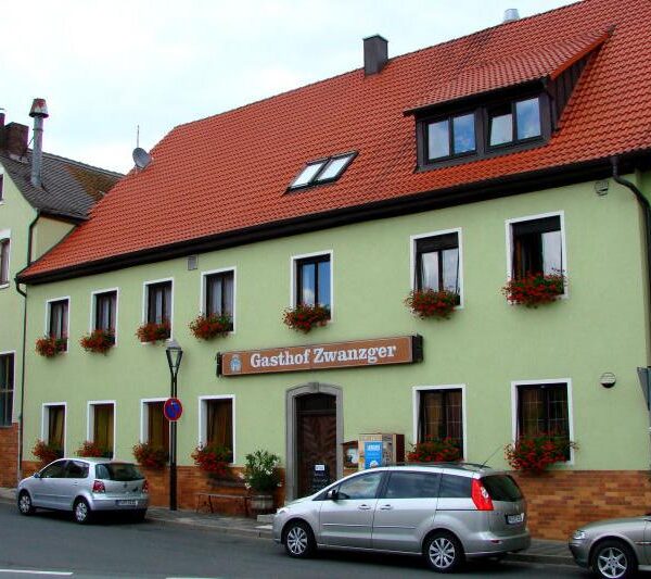 Auf dem Weg von Höchstadt nach Neustadt kommen Sie entlang der Aischgründer Bierstraße auch durch Uehlfeld, das Ihnen schon durch sein Torhaus und die vielen Störche auffallen wird. Nach dem Dreißigjährigen Krieg waren von ehedem über 600 Einwohnern nur noch 31 übrig geblieben – und die Brauerei Zwanzger. Heute sind es an die 3.000 Einwohner, die nicht nur wegen der feinen Biere, sondern auch wegen der Klassiker auf der Speisekarte gerne den Gasthof besuchen. Und für alle auswärtigen, die nach einer ausgiebigen Bierprobe lieber den Heimweg erst am nächsten Tag antreten wollen, stehen Gästezimmer zur Verfügung. Im Sommer trifft man sich im „Biergärtla“, gut versteckt im gemütlichen Innenhof. Die Speisekarte ist nicht groß, aber dafür mit Sorgfalt ausgewählt. Es lohnt sich auf jeden Fall z.B. das „Uehlfelder Kreenschnitzel“ zu probieren. Es versteht sich von selbst, dass es in den Monaten mit „r“ auch den beliebten Aischgründer Karpfen gibt.