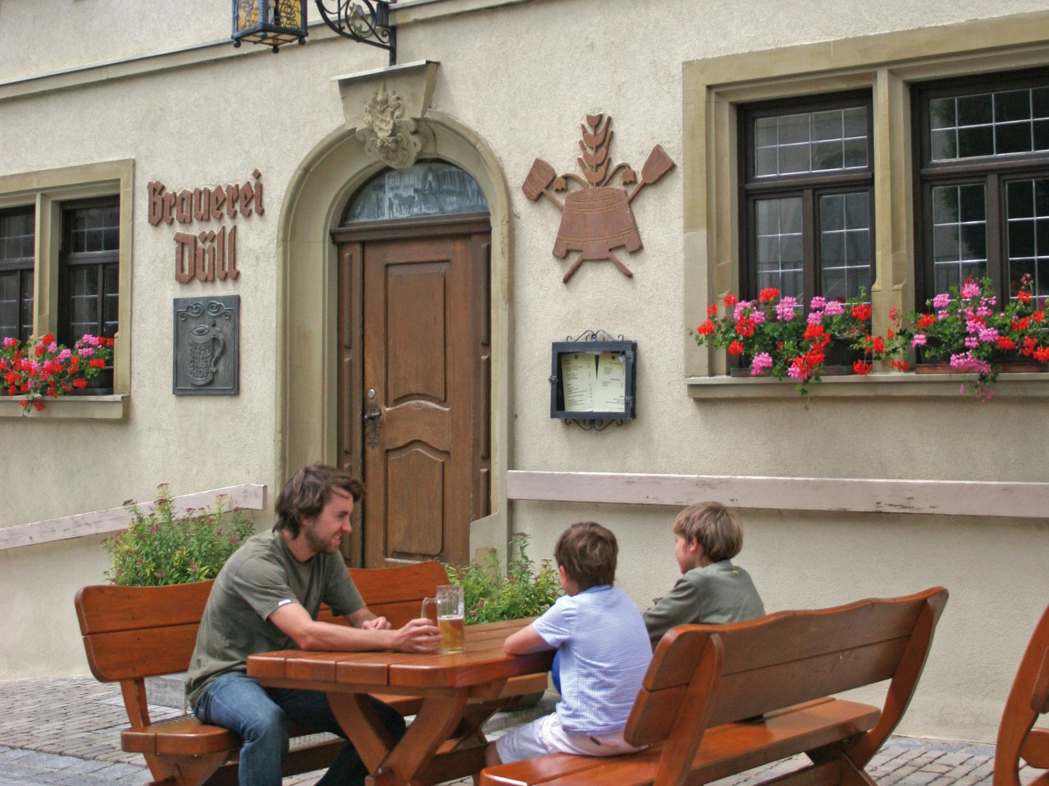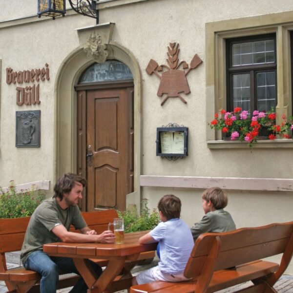 … steht Martin Rank nicht nur am Sudkessel seinen Mann. Als gelernter Braumeister und Koch erfüllt er auch alle Aufgaben in der Küche mit Bravour. Dazu gehören auch Hausschlachtung, durchgeführt beim Metzger zwei Orte weiter, und die zugehörige Schlachtschüssel jeden zweiten Dienstag (die Gaststätte öffnet dann auch schon zur Mittagszeit). Eine weitere Spezialität sind die Bauerngänse und -enten im Winter. Dazu gibt es dann auch ein buntes Kabarettprogramm, aktuelle Informationen finden sich auf der Internetseite.