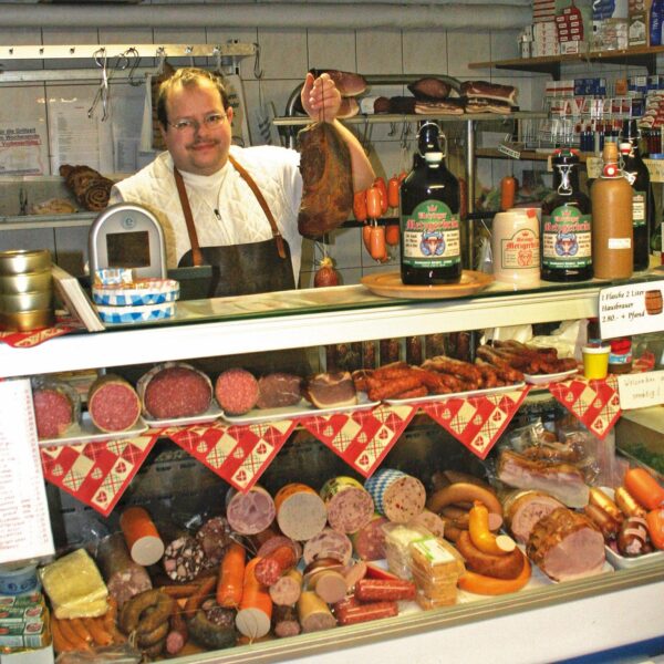 Mit der neuen Brauanlage baute der Metzgerbräu, der 2002 das Bierbrauen eher als Schnapsidee im Wurstkessel begonnen hat, auch eine wunderschöne Verkostungsecke, wo man mitten zwischen Brauerei, Metzgerei und Räucheröfen all die Leckereien des Hauses genießen kann. Und so nimmt es nicht Wunder, dass so mancher Gast das gesamte Abendprogramm nochmal in einer kleinen Tüte mit nach Hause nimmt. Weitere Köstlichkeiten gibt es zudem im kleinen Hofladen, der im Keller des Anwesens zu finden ist.