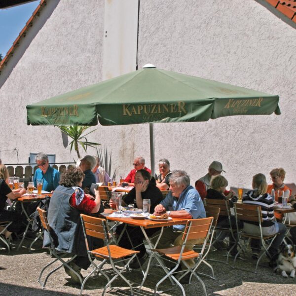 Eigene Brauerei: Helles, Pils, Dunkel (alles vom Fass), Hefeweizen.