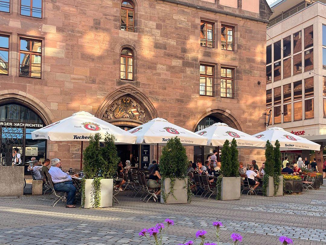 Fränkische Brotzeiten. Täglich mittelgroße Karte mit warmen Gerichten. Spezialitäten: Sauerbraten von der Semmerrolle, Mautkeller Brauhaus-Schmaus.