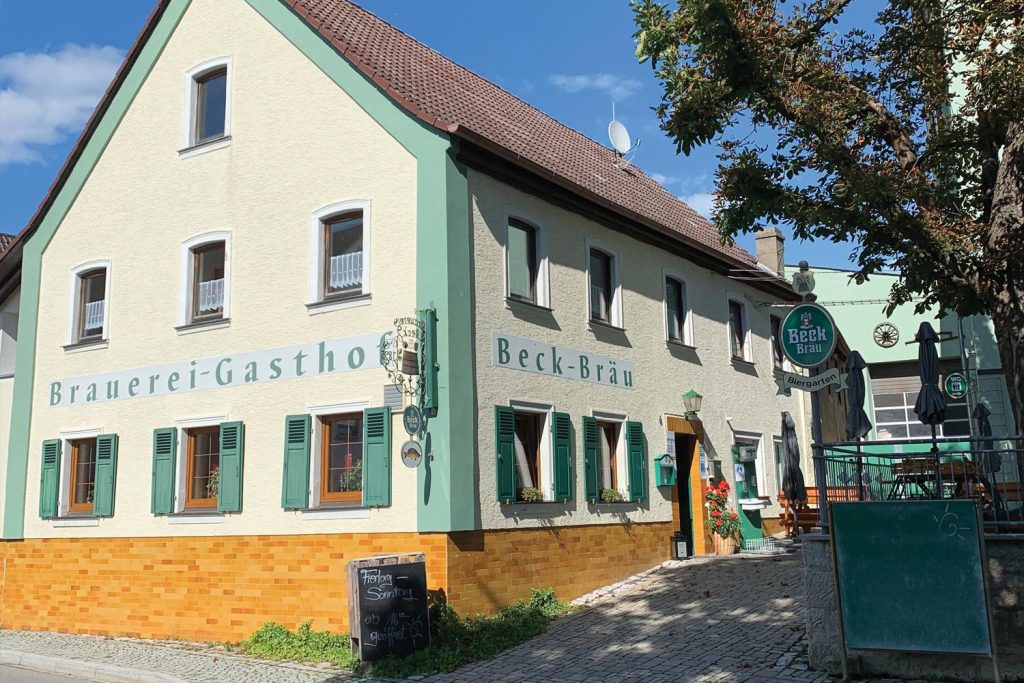 In der Küche und an der Theke der Brauereigaststätte versorgt die Familie Beck mit ihrem Team die Gäste. Sie bieten eine abwechslungsreiche und wöchentlich wechselnde Speisekarte mit fränkischen Spezialitäten. Je nach Jahreszeit gibt es Karpfen, Brotzeiten, Schnitzelvariationen, Salate der Saison und viele andere Köstlichkeiten. Dazu werden verschiedene Biere nach eigener Rezeptur serviert. Auf ihren Social-Media-Kanälen hält Familie Beck ihre Gäste immer auf dem Laufenden.