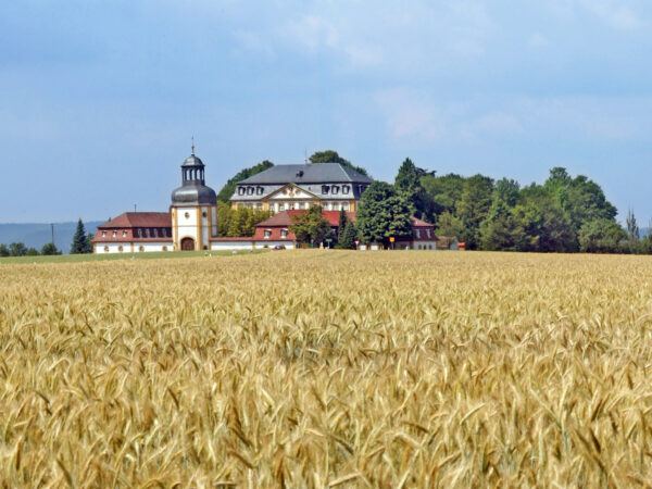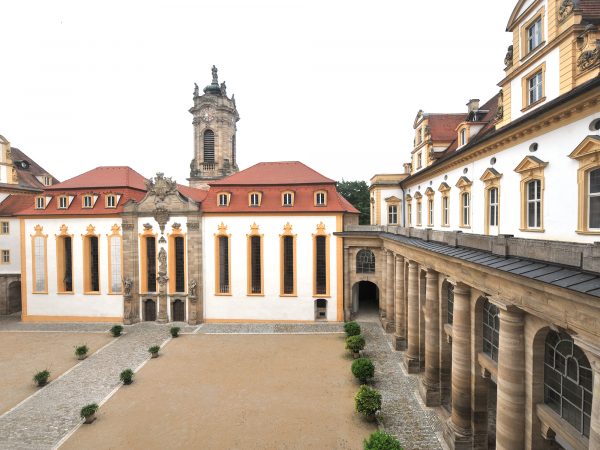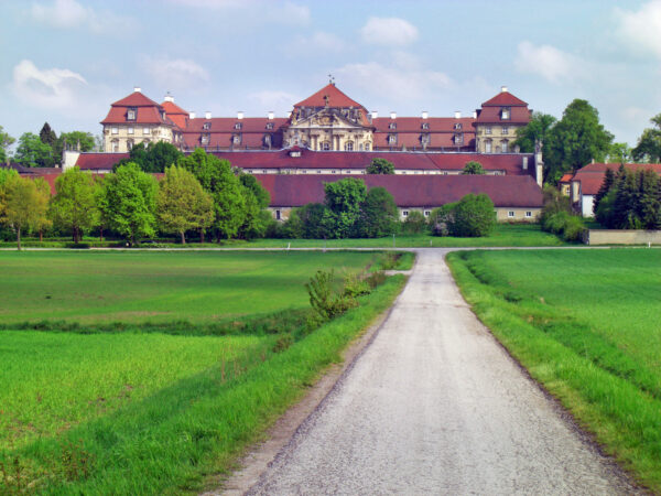 Die Radtour startet am Parkplatz von Schloss Weissenstein in Pommersfelden.