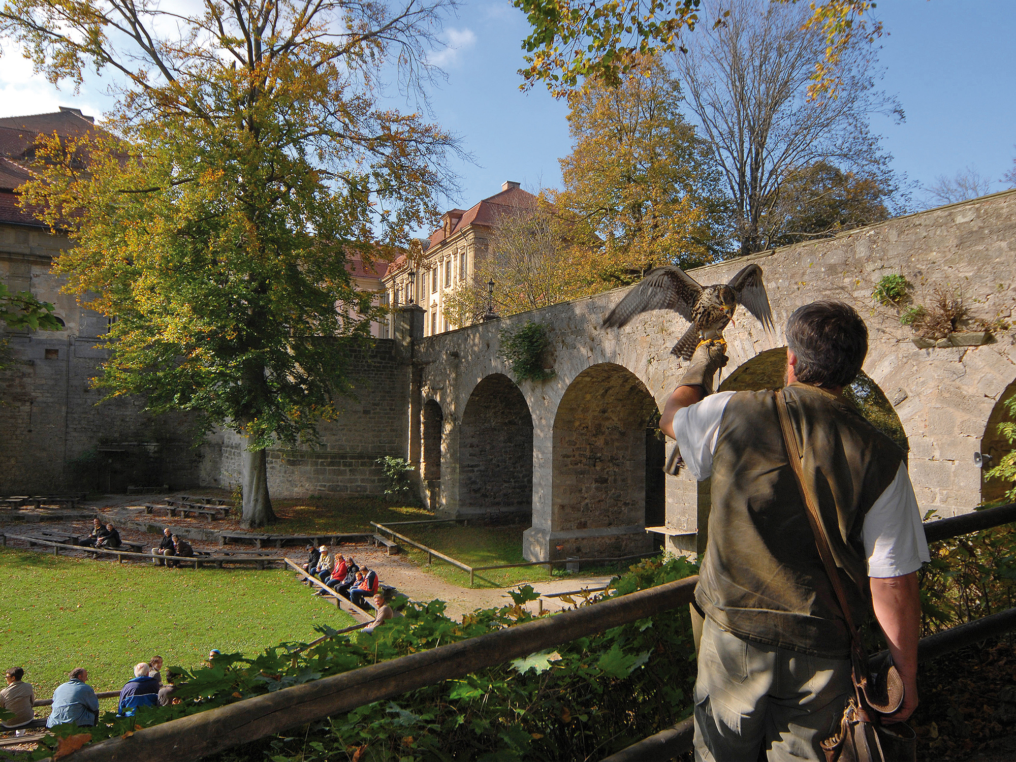 Auf diese Weise beflügelt, fahren Sie nun über die Altmühl nach Westen und folgen dem Hagenbach, der Sie über Traisdorf nach Schillingsfürst bringt. Auch hier steht ein wundervolles Schloss, in dessen Museen man viel über Greifvögel und die Falknerei lernen kann. Weiter geht es nach Westen, unter der A7 durch nach Diebach und dann in Richtung Norden entlang der Tauber in die Romantikstadt Rothenburg. Wer noch Zeit hat, kann die hiesige Gastronomie sowie die sehenswerten Museen erkunden, bevor es über den Bahnhof in Richtung Heimat geht.