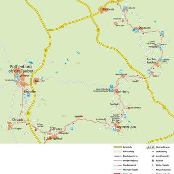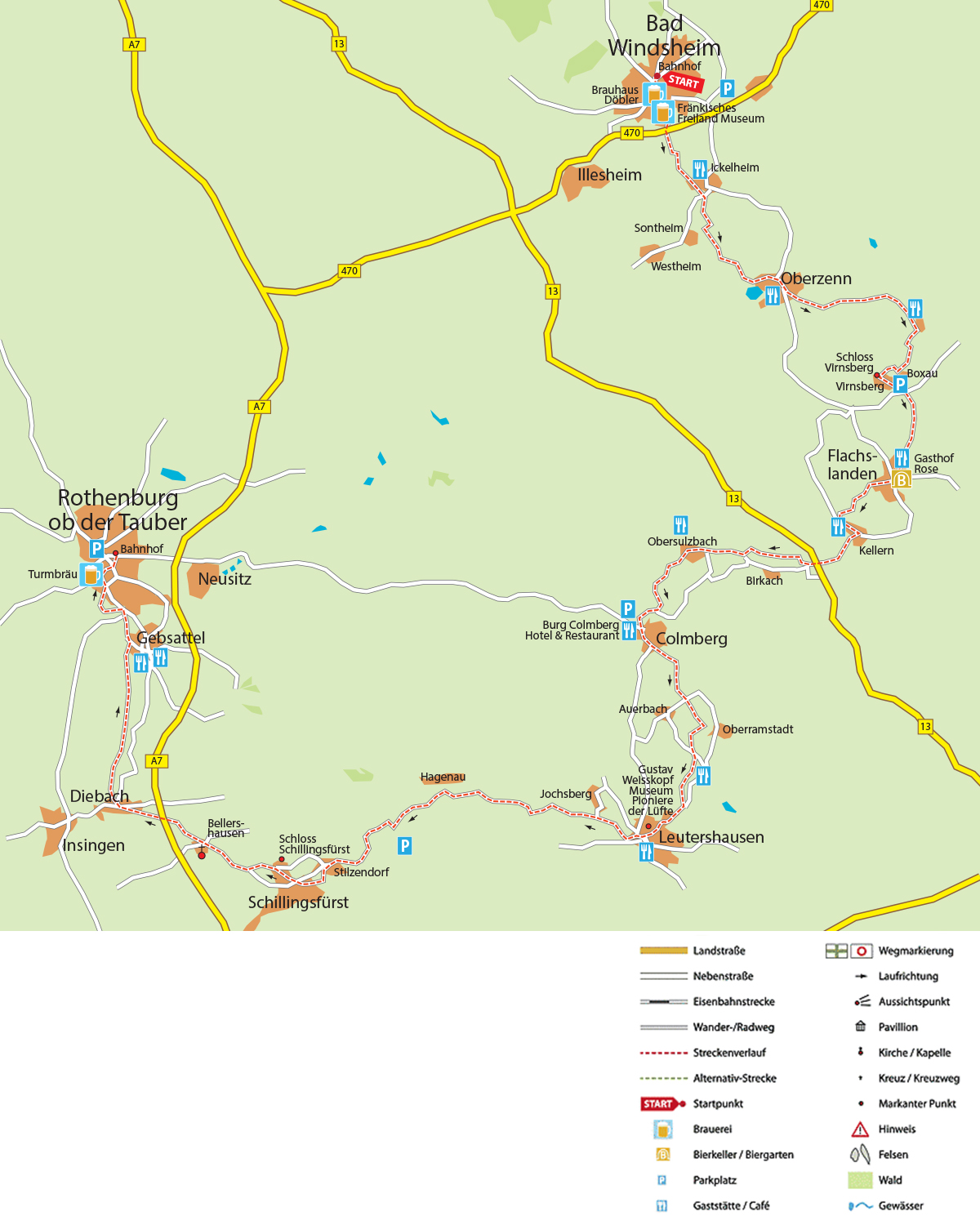 Orte entlang der Tour: Bad Windsheim, Ickelheim, Oberzenn, Virnsberg, Flachslanden, Kellern, Obersulzbach, Colmberg, Leutershausen, Jochsberg, Hagenau, Stilzendorf, Schillingsfürst, Bellershausen, Diebach, Gebsattel, Rothenburg ob der Tauber