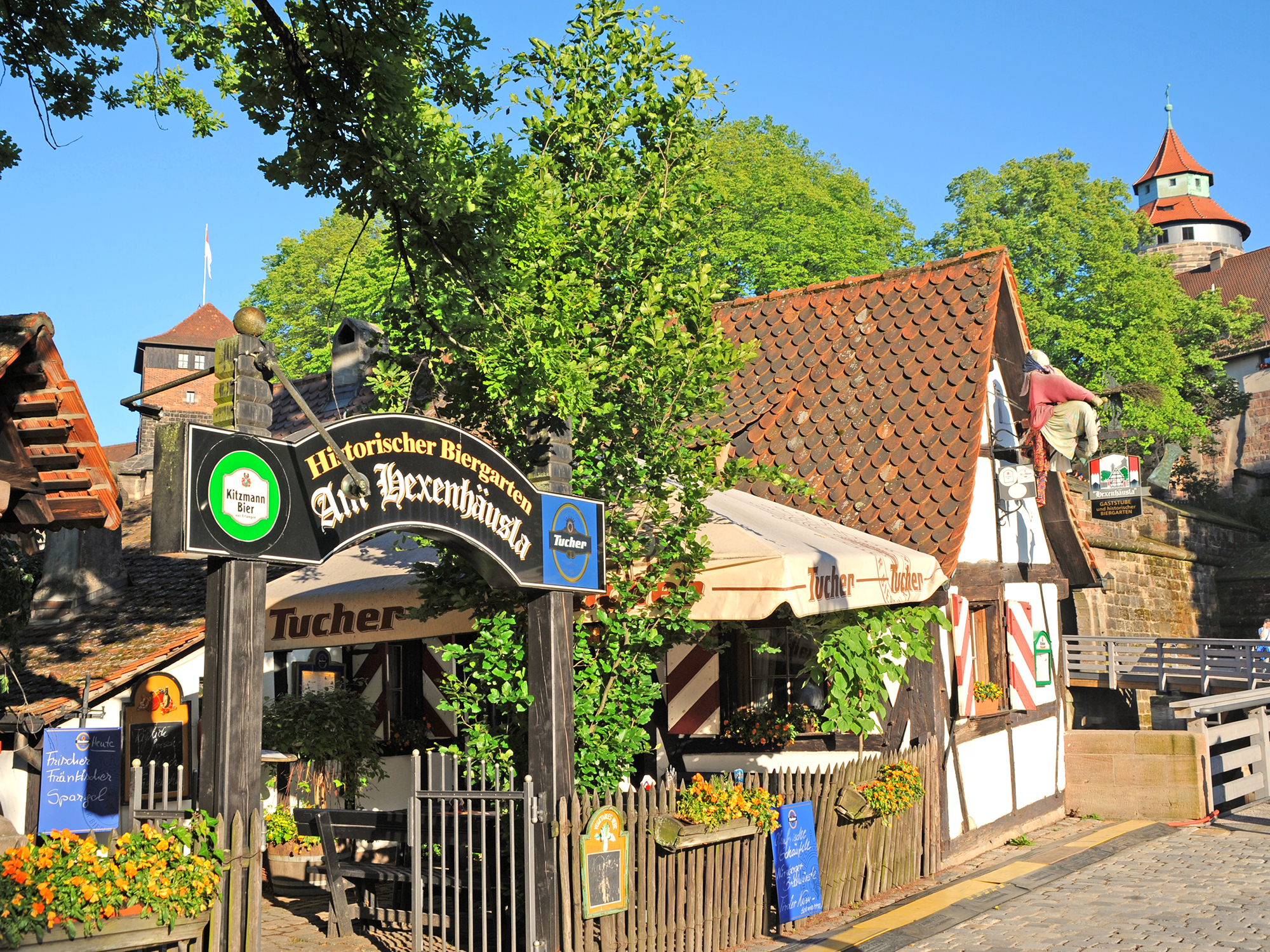 Nun biegen Sie wieder in die Königstraße ein und gelangen über die Kaiserstraße zur Fleischbrücke. Hier überqueren Sie den Fluss und halten sich gleich links bis zum Trödelmarkt, wo Sie viele Delikatessen und mit dem Henker- und dem Bratwurstmuseum viel Wissenswertes finden. Nun führt Sie die Karlsbrücke zum Maxplatz – ein weiterer möglicher Abstecher ist hier das Spielzeugmuseum – und in die Weißgerbergasse, die das Flair des mittelalterlichen Nürnberg wiederaufleben lässt. Am Weinmarkt geht es nun links den Burgberg hinauf zum Dürerhaus und zur Brauerei Altstadthof, wo Sie das dritte Rotbier genießen können. Wer möchte, kann einen Abstecher in die Kaiserburg machen und sich im Hexenhäusle Biergarten erfrischen. Über die Krämergasse kommen Sie zur Burggasse. Nachtschwärmer sollten sich hier die Nürnberger Kultbar „Downtown“ notieren. Über Schild- und Tetzelgasse gelangen Sie zum Maxtorgraben und dann nach Norden in die Rollnerstraße.